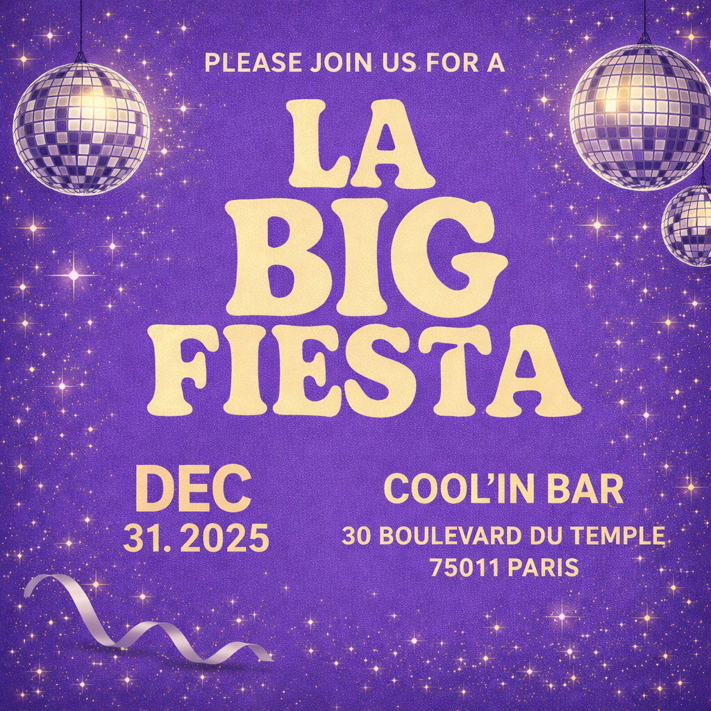 Cette année, le COOL’IN Bar reçoit l’équipe de La Big Fiesta dans une soirée du Nouvel An explosive : du son 90’ / 2000 / 2010, des cocktails qui mettent l’ambiance, des bulles pour célébrer...